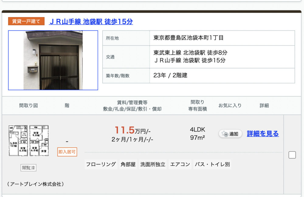 なので、試しにHOME'Sで一軒家の賃貸物件を探してみましたよ。