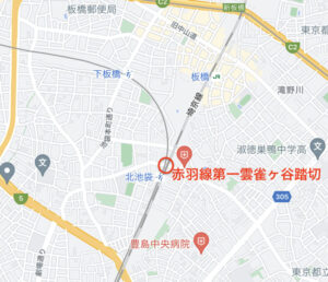 北池袋駅付近の踏切が「なかなか開かないな〜」と思ったら、きっぱり諦めて板橋方面にある踏切に向かうと良いでしょう。